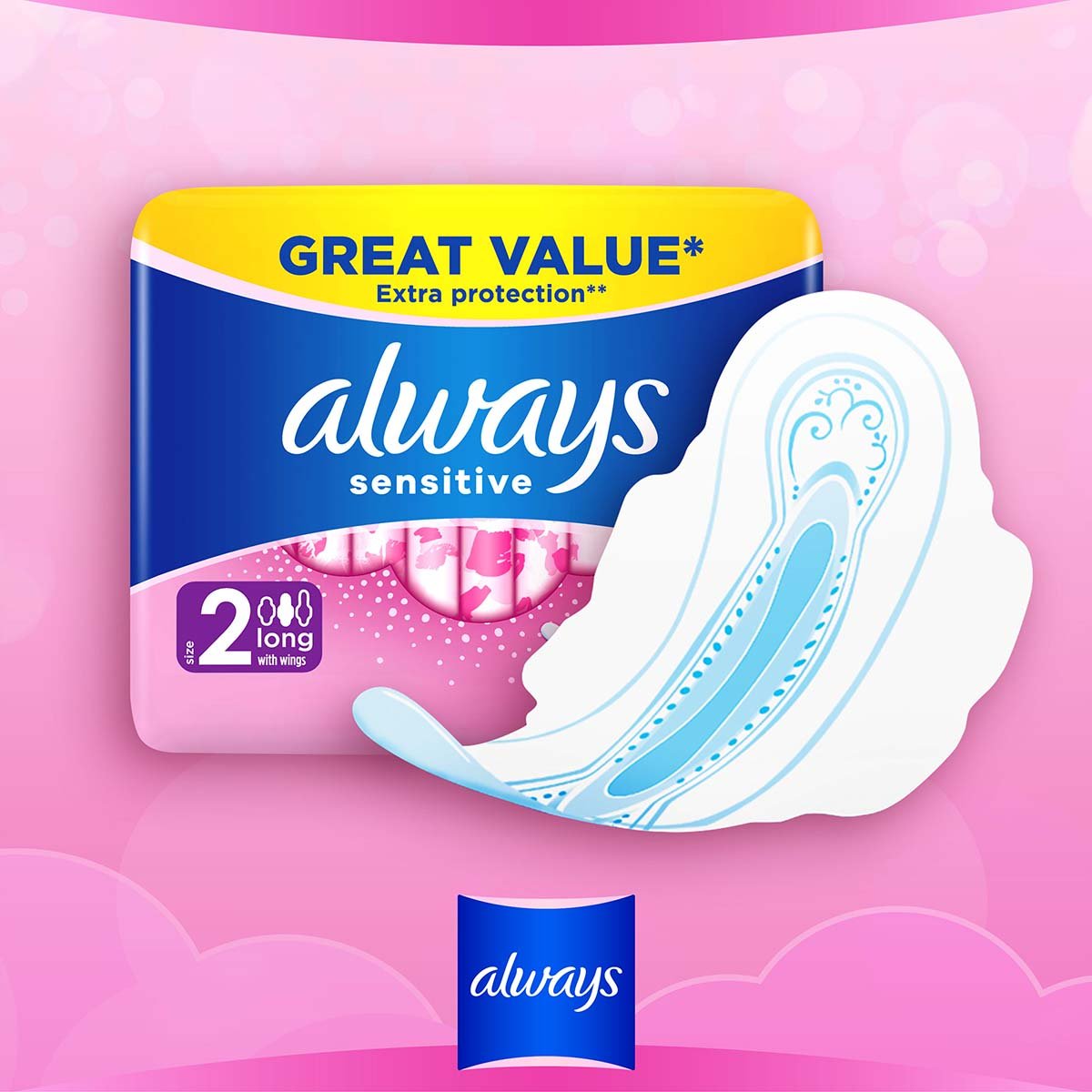 - Always Sensitive is Softer* & flexible (*Softer topsheet and softer wings compared to Always Ultra)