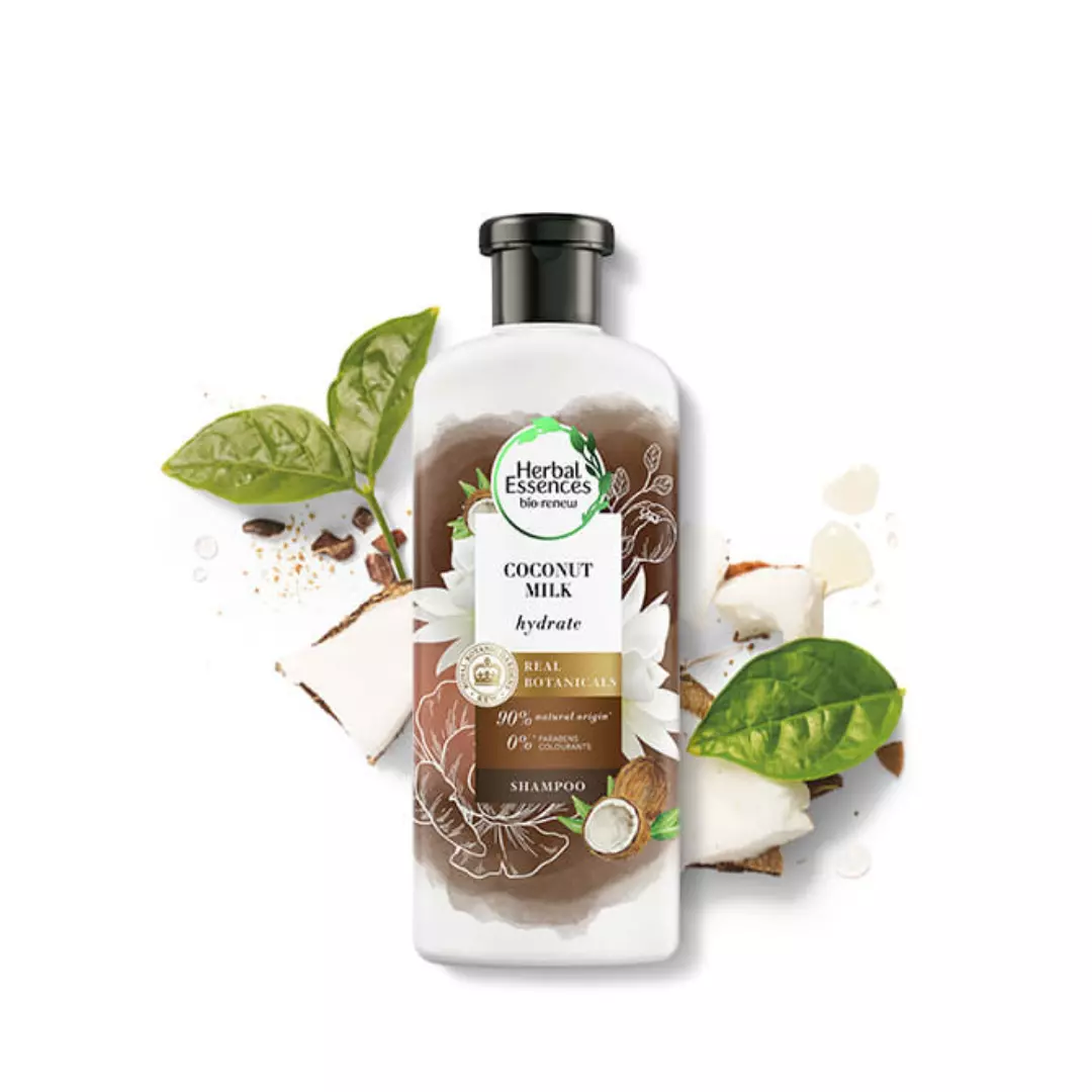 Herbal Essences Coconut Milk shampoo hydrates and revives dry, damaged hair.